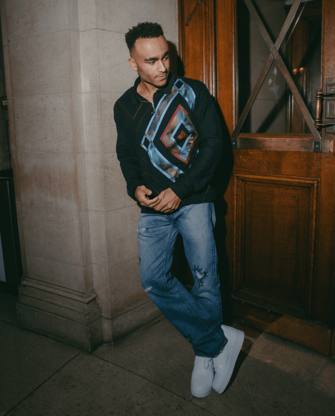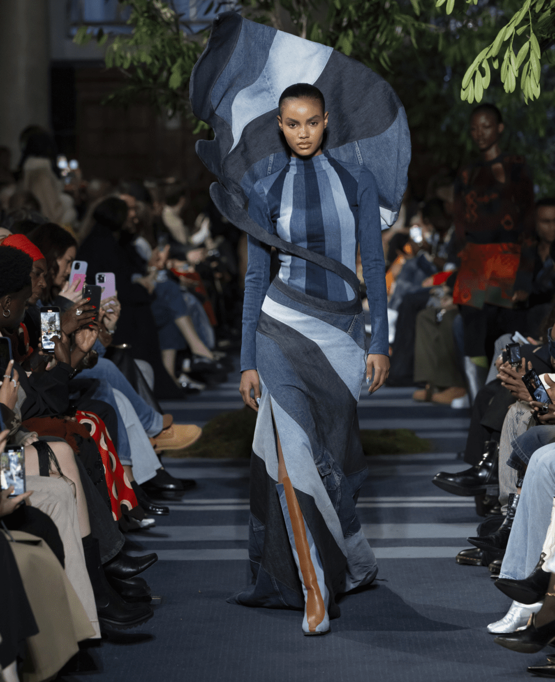 Three looks in the collection were also crafted from reworked denim supplied by Levi’s in a special partnership between Levi’s and Ahluwalia.