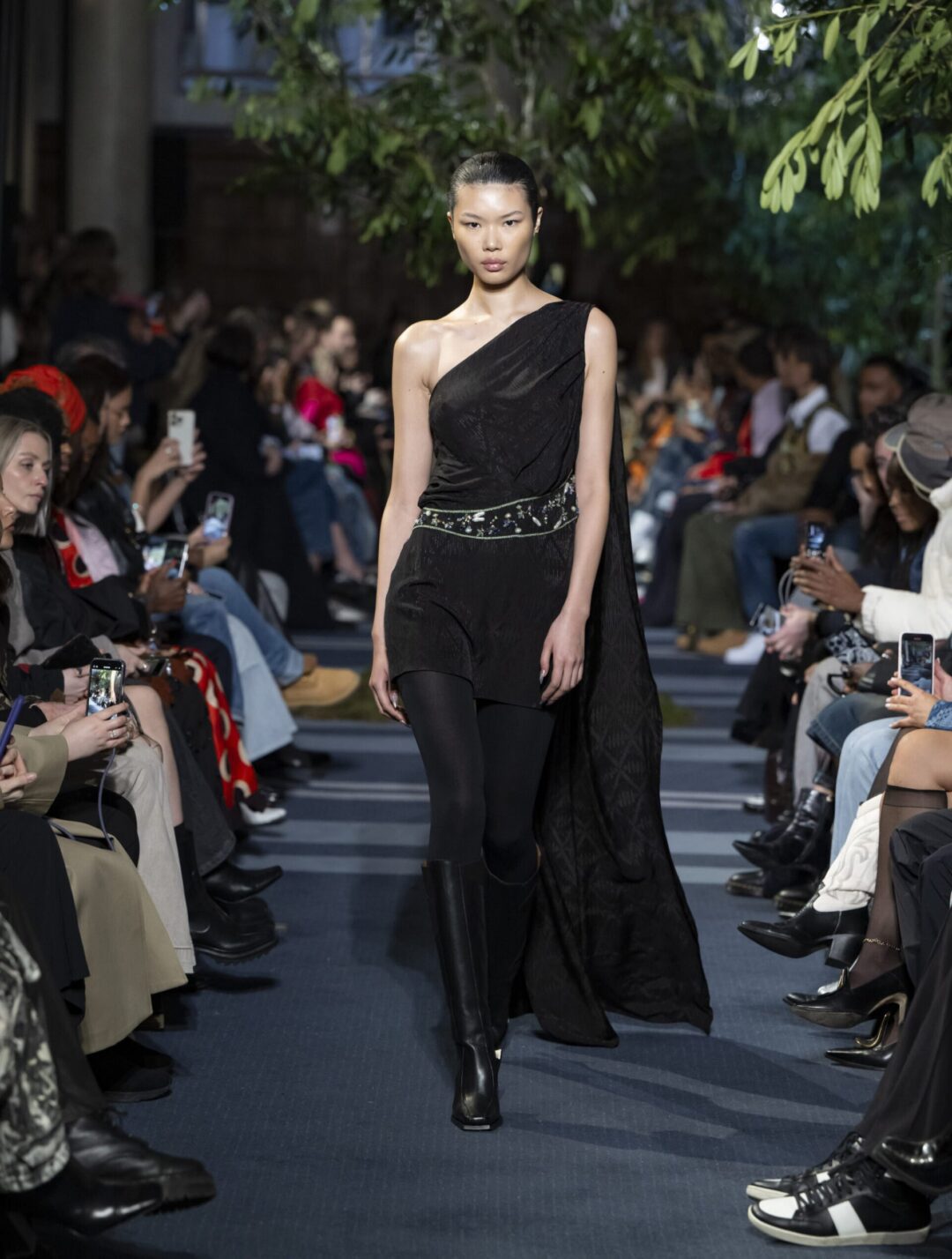 To create the setting for the fashion show, seating for 500 people was laid out in the room to create a runway within the centre. The addition of real trees interspersed along the runway gave the event an ethereal, natural feel that enhanced and complemented the collection.