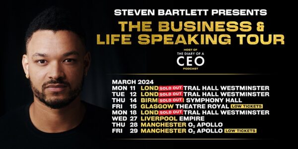 We are delighted to announce we are hosting Steven Bartlett on his brand new ‘The Business & Life Speaking Tour’.